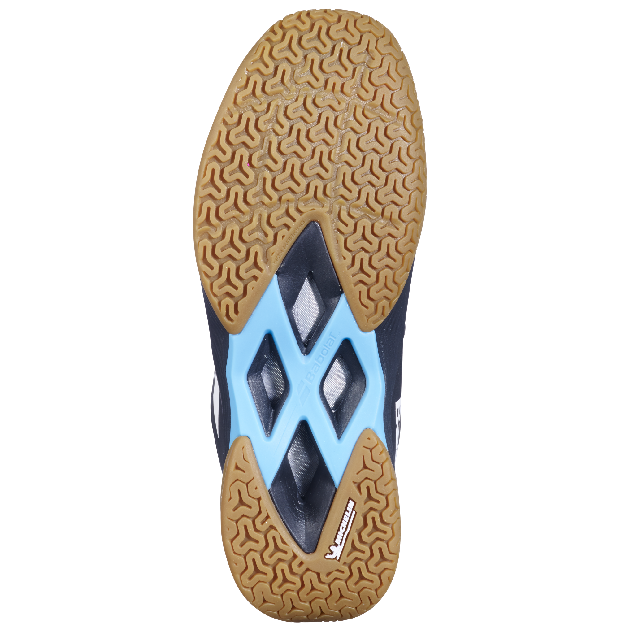 Michelin rubber has been developed specifically for badminton to provide the perfect combination of grip and durability on all types of indoor courts. A heavy-duty rubber guard covers the inner forefoot up to the toes for unparalleled upper durability.