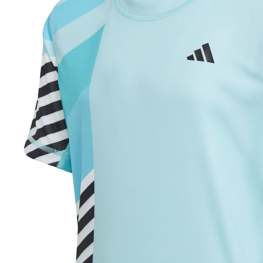 Juniors' adidas T-shirt celebrates the good things that can come from disrupting the norm. With a bold all-over print, this shirt is designed to withstand every challenge of tennis. The FreeLift design ensures comfortable serves and shots. AEROREADY keeps you dry and ready to play on the court. Made from 100% recycled materials, this product represents just one of our solutions to help reduce plastic waste.