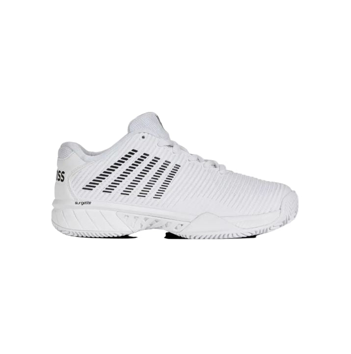 K-Swiss' best-selling shoe, the Hypercourt Express 2 available in HB (clay court). A light, comfortable, breathable shoe with a generous fit - making it the ideal choice for a variety of playing styles and levels. Durawrap Flex, gives the shoe support with no break-in period, while Surgelite midsole technology provides all day comfort.