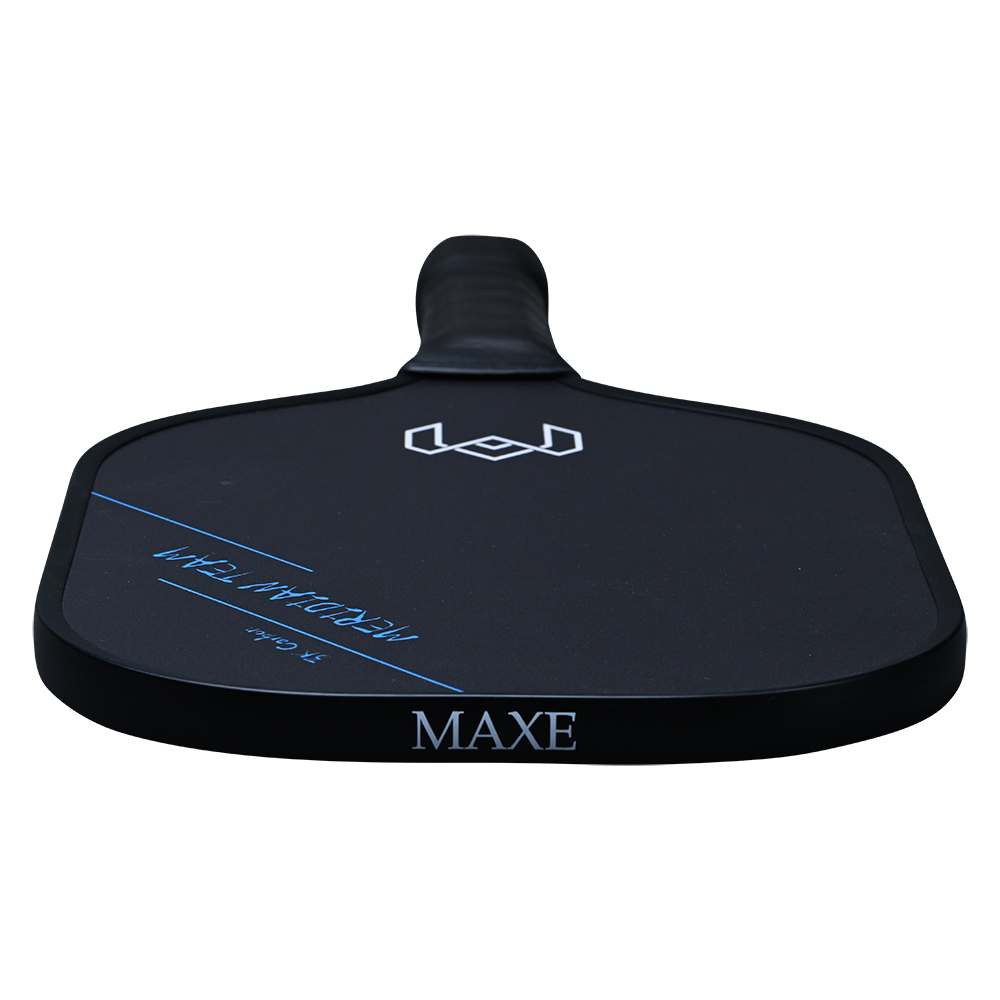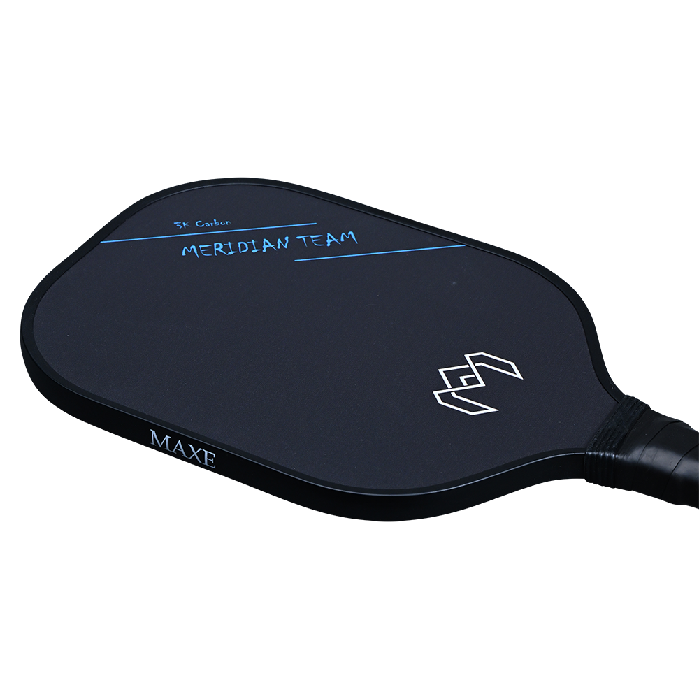 The MAXE Meridian Team is a high-quality thermoformed 3K carbon pickleball racket designed for intermediate club players. Featuring a crisp and responsive surface, this racket delivers exceptional power, while MAXE Gritt technology enhances control and spin for precision gameplay. With a 14mm frame thickness and a protective side guard, the Meridian Team offers durability and consistent performance.