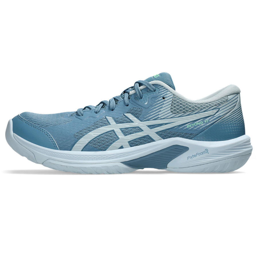 The BEYOND FF model is designed to provide advanced support and cushioning so you can move more comfortably and confidently on the court. By revamping the upper's collar and using a no-sew construction, we were able to make this shoe more supportive during quick movements. The new sole setup features a 5mm heel drop and TRUSSTIC support unit that are inspired by the SKY ELITE FF 3 shoe. This helps produce better acceleration and more powerful jumps when you're spiking or blocking the ball.