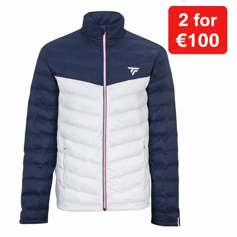 It's the essential piece to face the winter season. Compact, this zipped down jacket is made from a lightweight, water-repellent polyester mesh to stay dry. To ensure maximum comfort and warmth on and off the court, this jacket is fully lined with 100% synthetic down. The warmest product in the collection to protect you from the cold and bad weather. A clean and elegant design with the three-color zipper that recalls the origins of the brand.