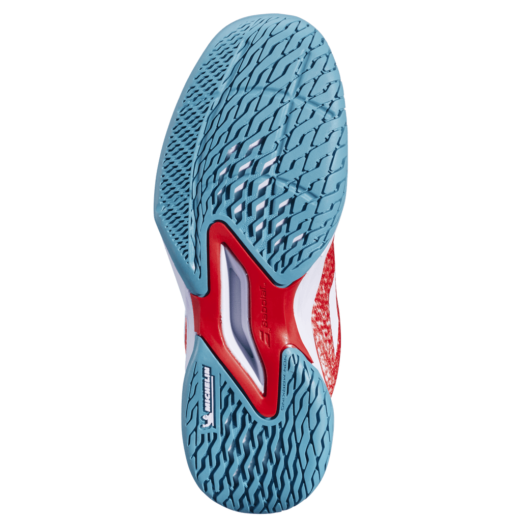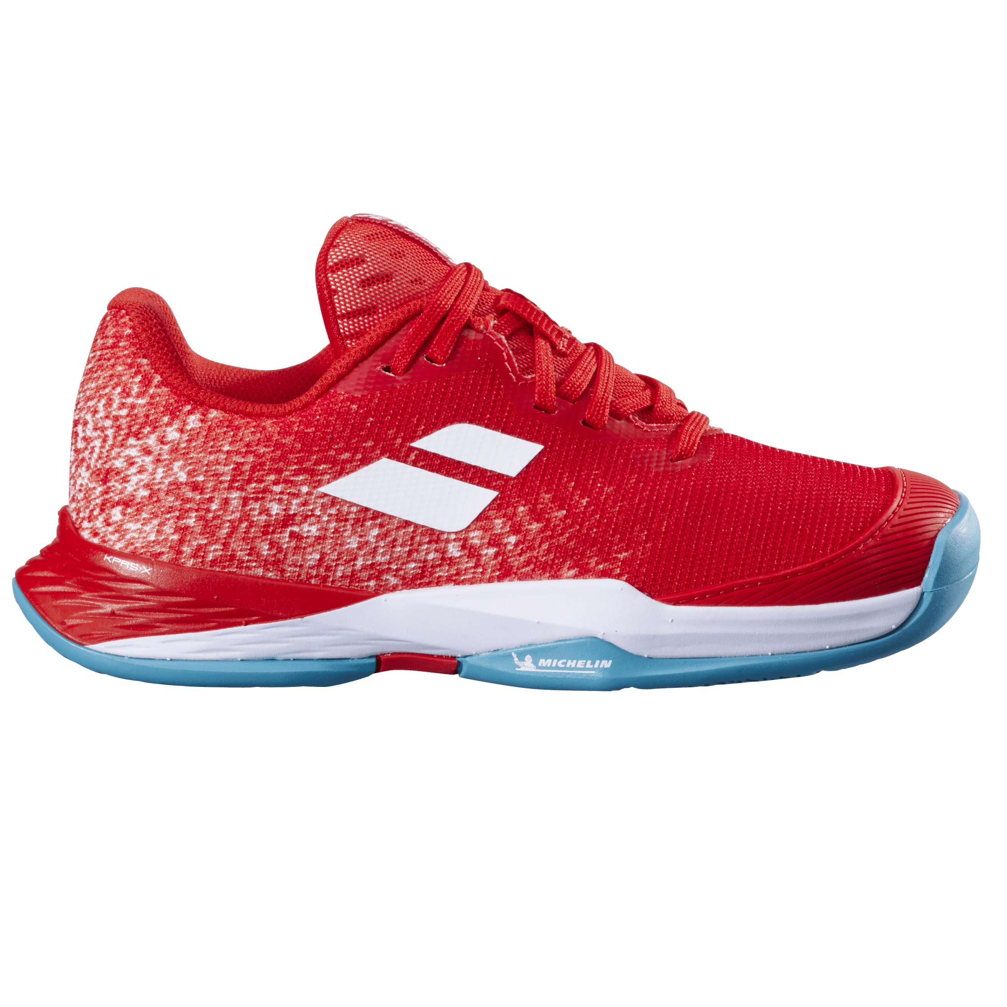 The sole is designed to respond precisely to the demands of the game: the tread surface is increased in areas with the highest abrasion and lightened in areas with the lowest. The JET MACH 3 Jr outsole, combined with Michelin technology, offers enhanced durability to reduce the wear and tear caused by tennis-specific movements.