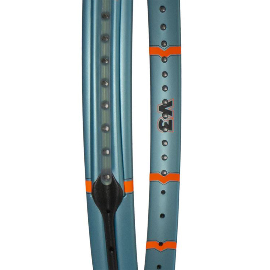 The VÖSTRA V3 is an oversize racquet with the power you would expect while also offering great control and maneuverability. It features Volkl’s Catapult system at 3 and 9 o’clock for an extra dose of power. The VÖSTRA V3’s combination of comfort from the V-Sensor handle system, control and power give players the confidence to hit with accuracy not usually associated with oversize racquets.