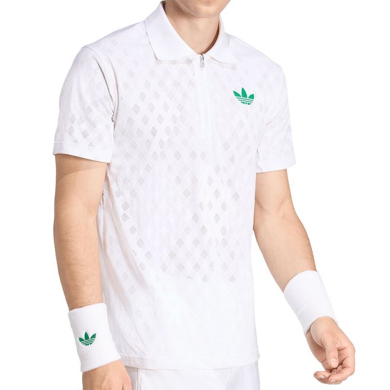 Rise to the challenge in the classic whites and thoughtful design details of the Adidas Wimbledon 2025 Collection. The adidas Originals Polo Pro features a regular fit, CLIMACOOL+ technology, FreeLift construction, and a flat-knit collar with a zip-up design.