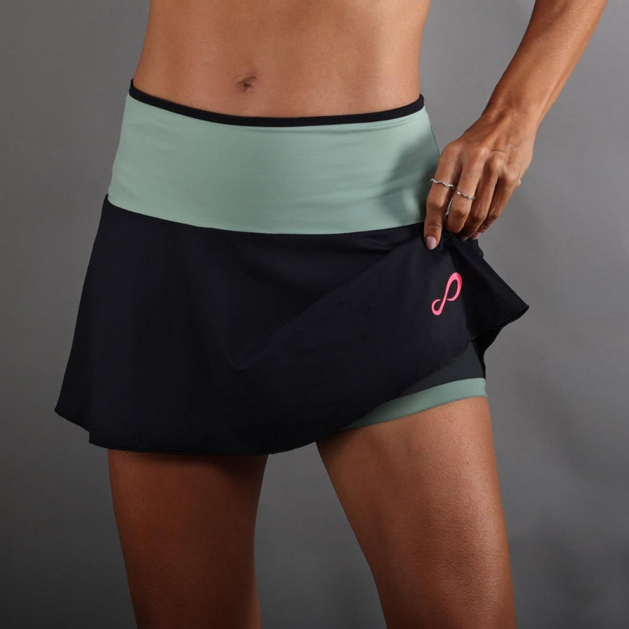 The Endless® Mile skirt is designed with a high waist so you feel comfortable and safe while playing. Its light flight stylizes the figure and helps you move with maximum comfort. Made with high quality extra-elastic fabric with official Lycra® certification, it adapts perfectly to all your movements on the track. Thanks to its multifilament technology it absorbs sweat and expels it quickly to help you be dry and comfortable during the game. In addition, it protects you from solar radiation with a UPF 50 protection factor in the areas covered by the fabric.