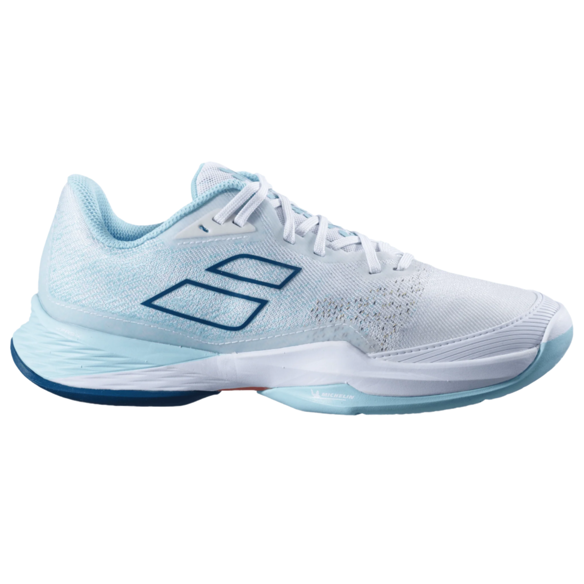 Babolat Jet Mach 3 All Court Womens - 1055 White/Angel Blue / 6 is in our warehouse, please allow an extra 2-7 days for shipping.